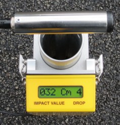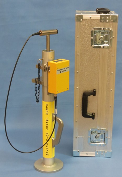 Model GTM-SS-E2 (Australian-Made): 2 'AA' alkaline batteries, single on/reset button, press and release, meter attached to guide tube, stainless steel T-handle, stainless steel hammer weight with hardened steel impact end for 4.5 kg version (red anodised aluminium weight for 2.25kg version, black plastic weight for 0.5kg version), clear anodised aluminium guide tube, 3-100 clegg scale (as typically configured). |